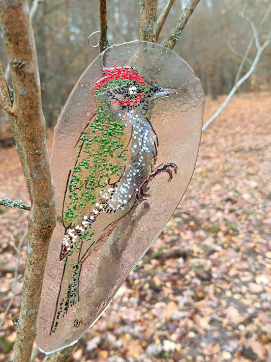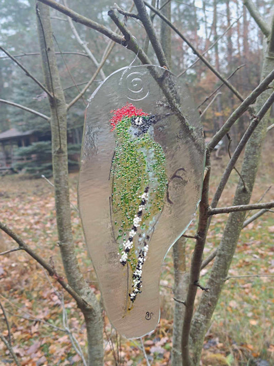 Dzięcioł zielony - zawieszka ze szkła