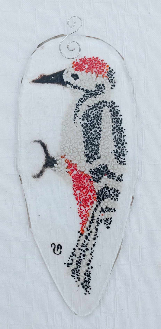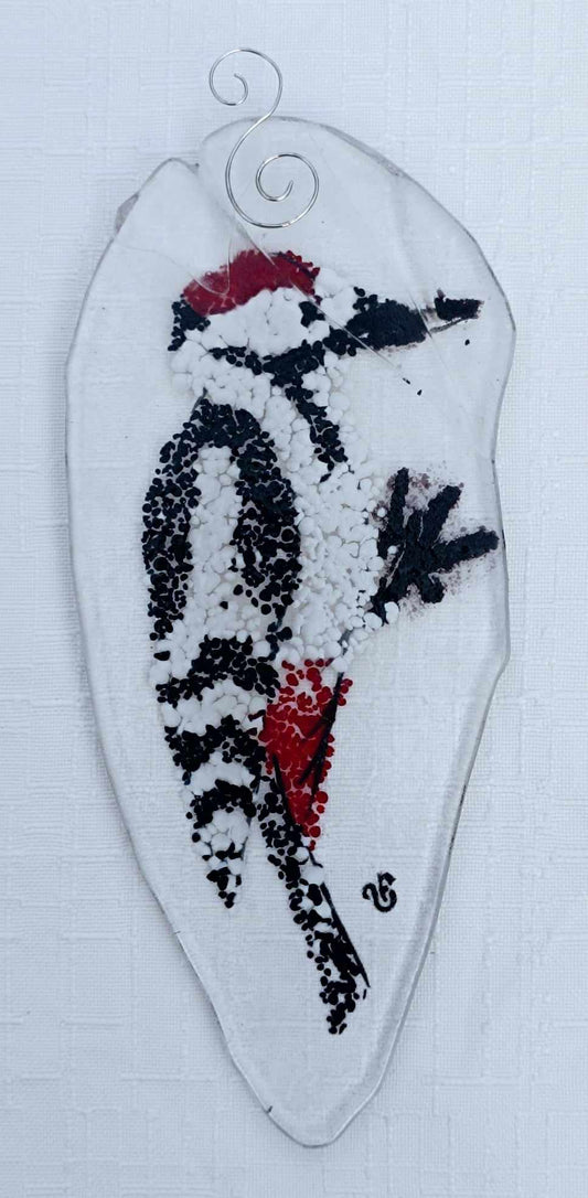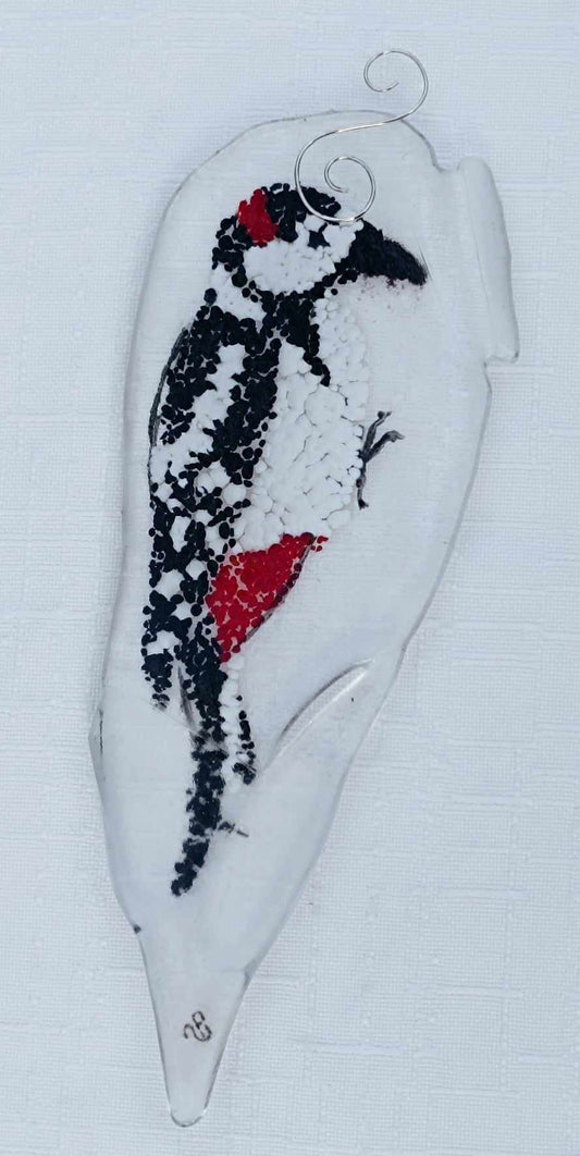 Dzięcioł białogrzbiety - zawieszka ze szkła