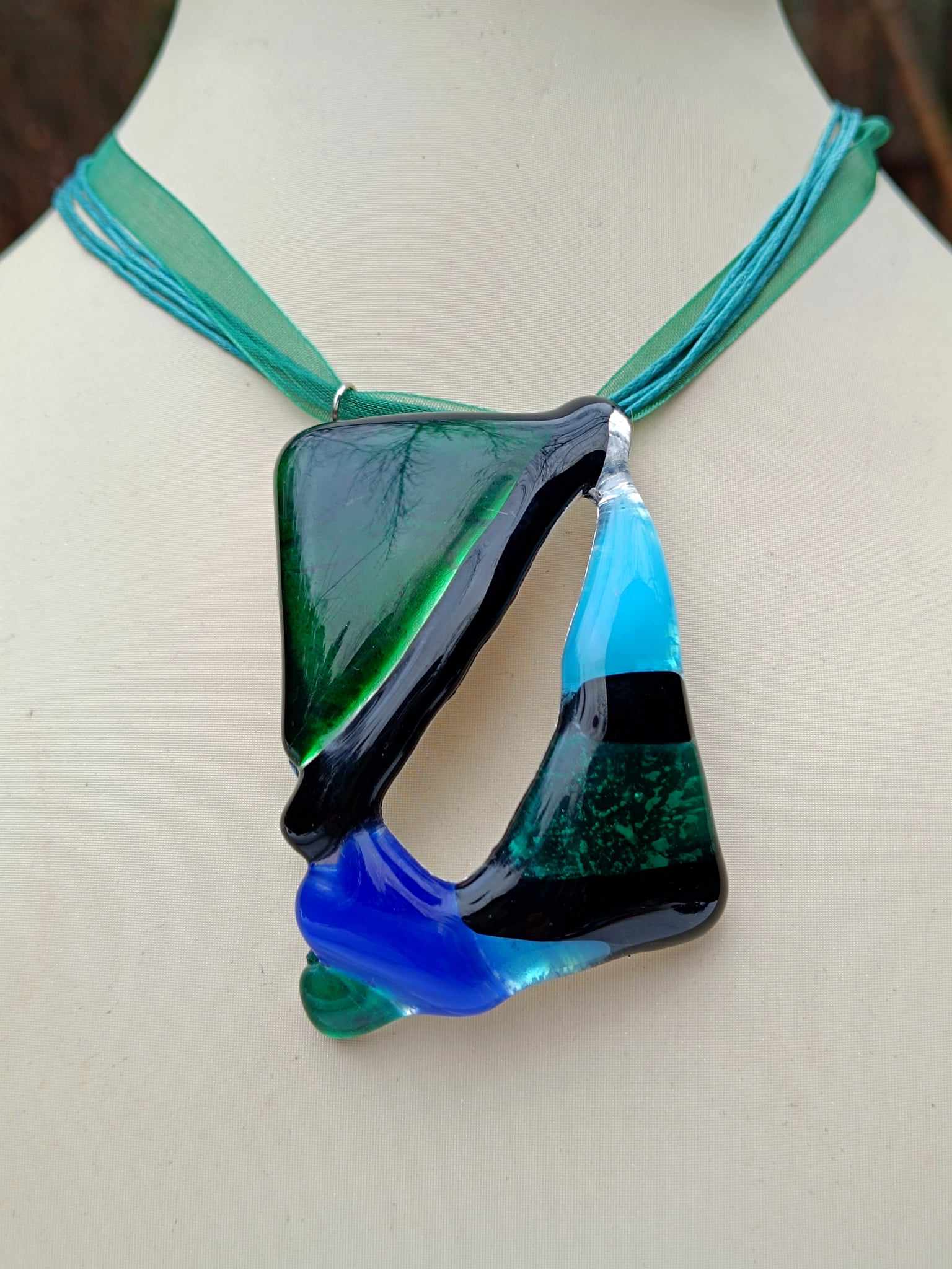 Niezwykle przemyślana zawieszka będzie na Twojej szyi ozdobą na każdą okazję. Podkreśli Twoją urodę i wagę wydarzenia. Przyciągnie uwagę wielu osób. Przywoła piękne wspomnienia i doda Ci pewności siebie. Jesteś warta tego aby nosić na szyi dzieło sztuki.. 8 cm x 5 cm. Dzięki połączeniu z aluminium biżuteria jest bezpieczna w użyciu. Szkło jest lekkie i ciepłe w dotyku. Bardzo przyjemnie nosi się taką biżuterię. Możesz ją również powiesić jako dekorację na ścianie i zachwycać się jej lśnieniem w każdej chwili.