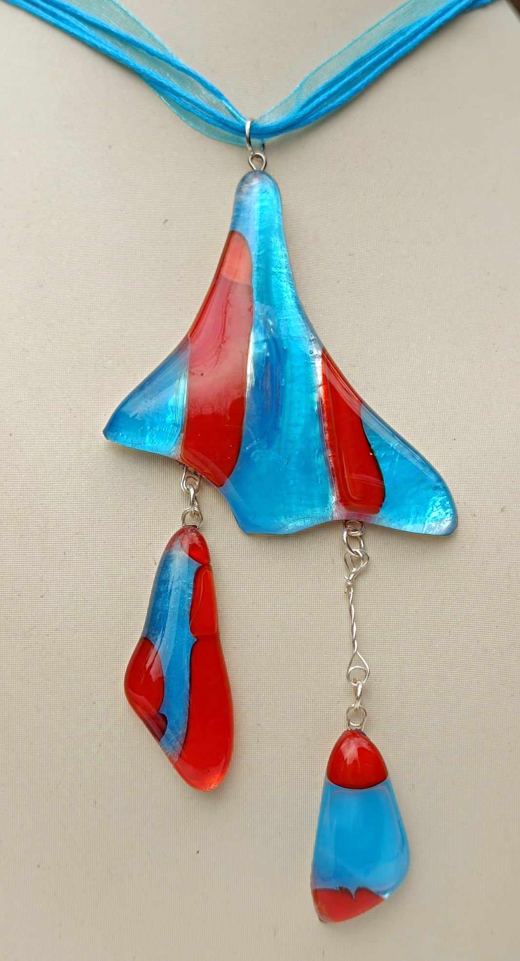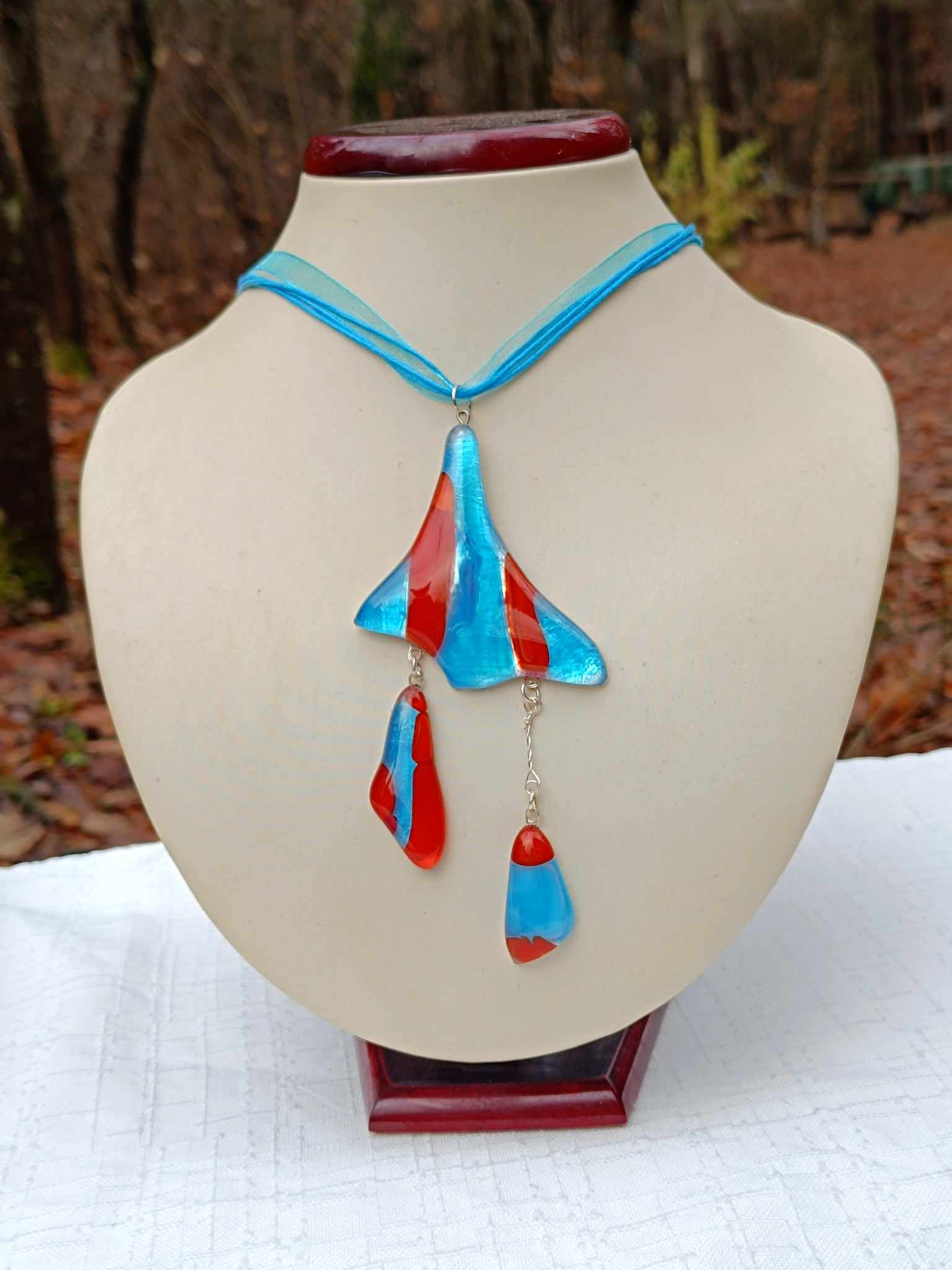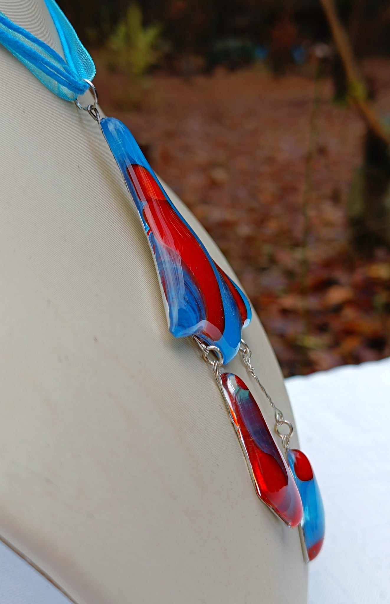 Niezwykle przemyślana zawieszka będzie na Twojej szyi ozdobą na każdą okazję. Podkreśli Twoją urodę i wagę wydarzenia. Przyciągnie uwagę wielu osób. Przywoła piękne wspomnienia i doda Ci pewności siebie. Jesteś warta tego aby nosić na szyi dzieło sztuki.. 12 cm x 6 cm. Dzięki połączeniu z aluminium biżuteria jest bezpieczna w użyciu. Szkło jest lekkie i ciepłe w dotyku. Bardzo przyjemnie nosi się taką biżuterię. Możesz ją również powiesić jako dekorację na ścianie i zachwycać się jej lśnieniem w każdej chwili.